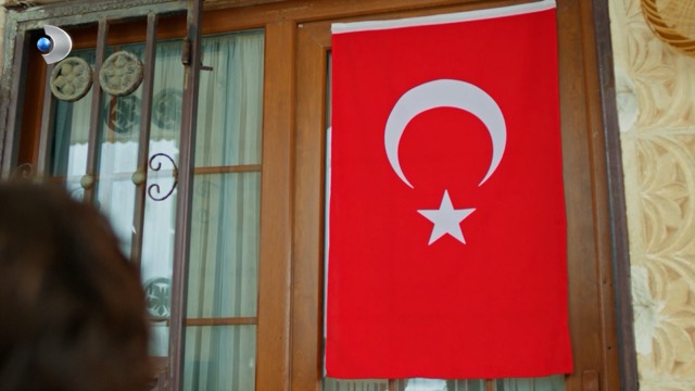Bayrağı büyük bir özenle alan Pakize, “Türk Bayrağının dolapta ne işi var? Biz buna ütü basalım sonra da evin en güzel yerine asalım” dedi. Al bayrağı ütüleyen Pakize, bayrağı Cihan’a verdi. Cihan da asker yürüyüşüyle taşıdığı bayrağı Pakize ile birlikte konağa astı. Pakize’nin “Ver bakalım şimdi selamını” sözleri üzerine Cihan, Türk bayrağına selam durdu.